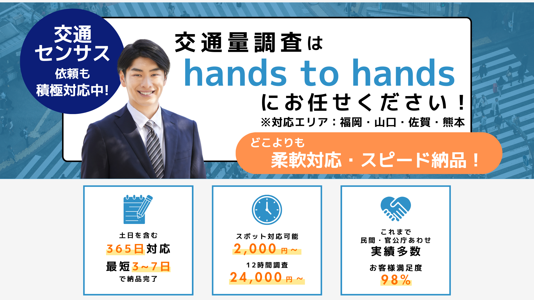 A. 調査の場所、時間帯、計測する対象(車両、歩行者、自転車など)を確認させて頂き、御見積書を作成させて頂きます。
